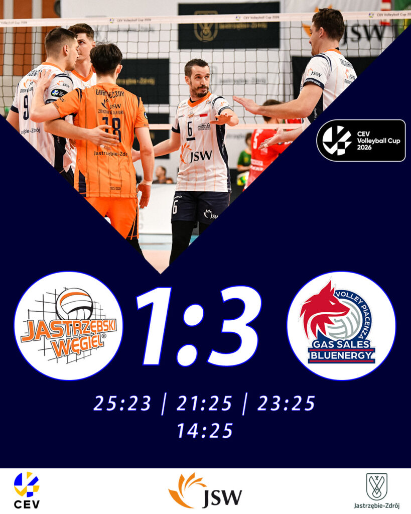 JSW Jastrzębski Węgiel – Gas Sales Bluenergy Piacenza 1:3 (25:23, 21:25, 23:25, 14:25)