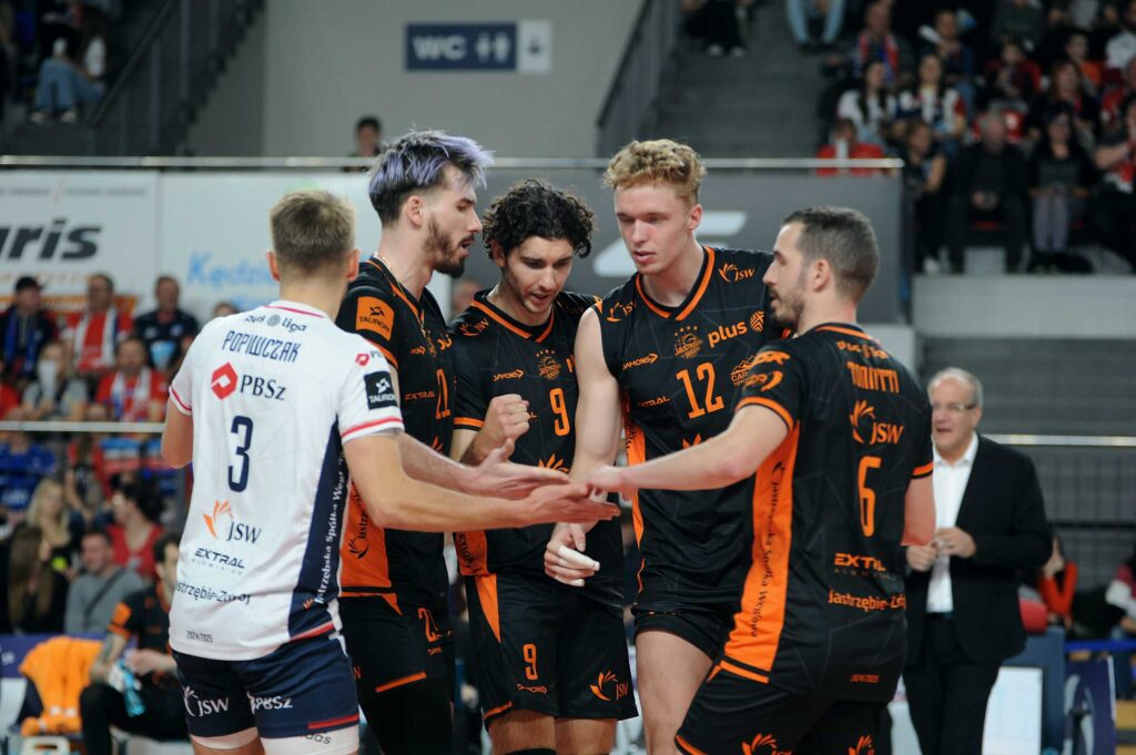 Jastrzębski Węgiel: Kaczmarek, Toniutti, Huber, Brehme, Fornal, Vicentin, Popiwczak (libero) oraz Żakieta, Carle, Finoli, Waliński