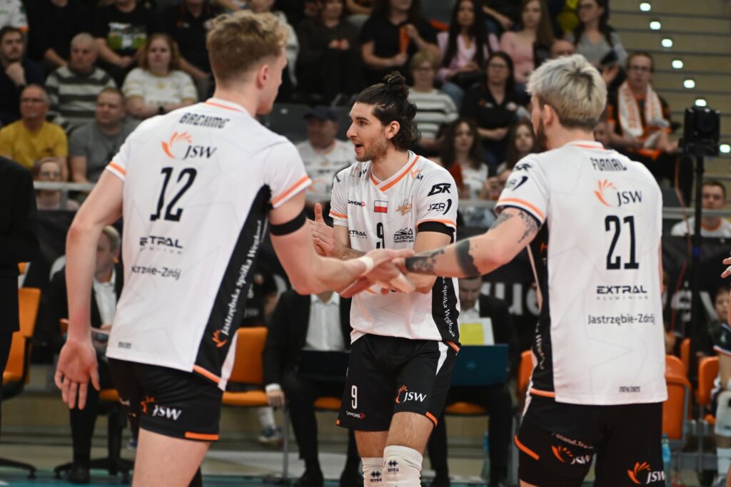 W trzeciego seta lepiej weszli przyjezdni (5:6, 5:8). Sygnał do boju potężnym ciosem w dziewiąty metr dla Carle, a następnie Xander Ketrzynski przestrzelił w ataku. Potem znów zadziałał nasz blok i mieliśmy remis (8:8). Prowadzenie zagwarantował nam Brehme, potem ważną kontrę zwieńczył Fornal i mieliśmy już dwa punkty w zapasie (16:14). Od tego momentu to nasz zespól nadawał już ton boiskowym wydarzeniom i to Jastrzębski Węgiel wyszedł zwycięsko z tej konfrontacji, nie tracąc nawet seta.